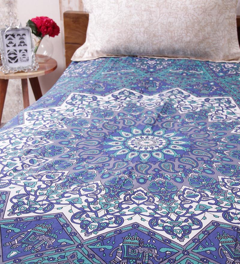 Cotton Single Bedsheet with out Pillow Blue Color Paisley Handlook Print Bedsheet