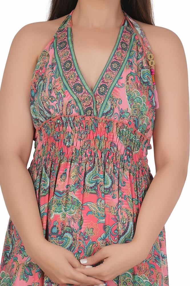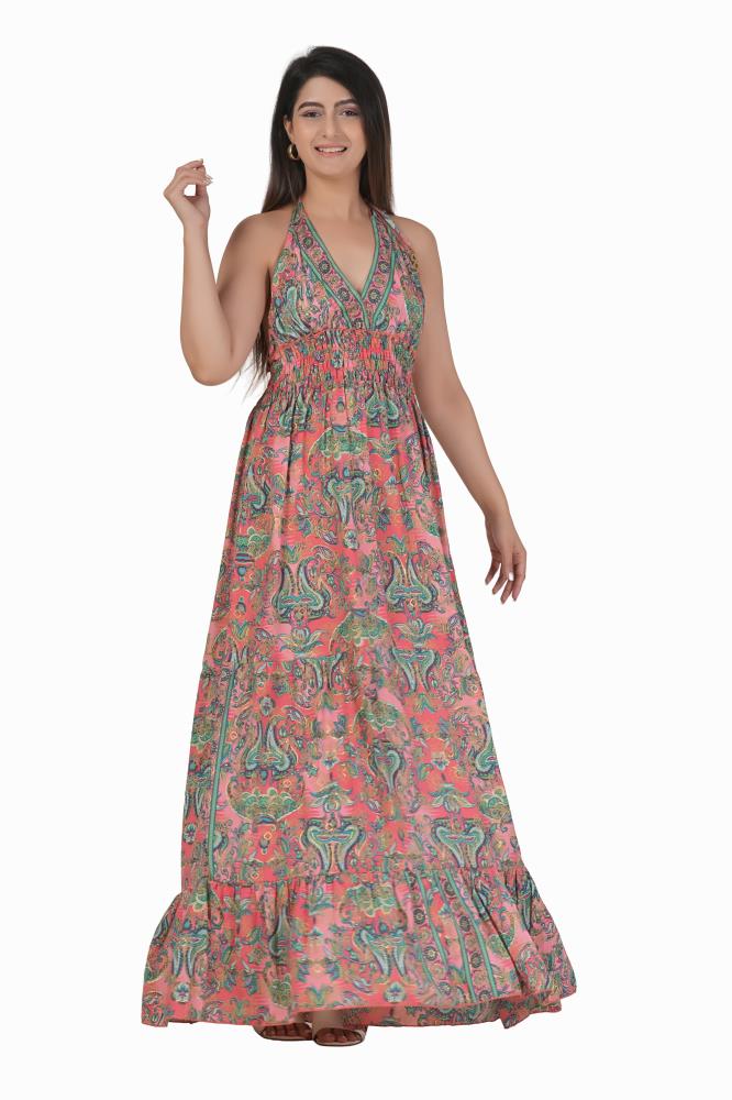 KASTURI SILK BOHO FLORAL MAXI DRESS