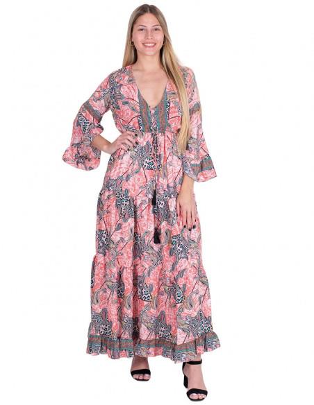 New-style bohemian Long dress with ruffles on the sleeves and at the bottom of the dress for women's