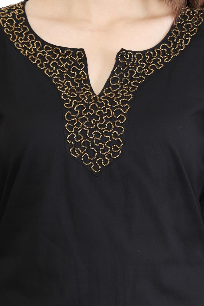 Cotton Beads Hand Work Black Casual V-Neck Soild Dress