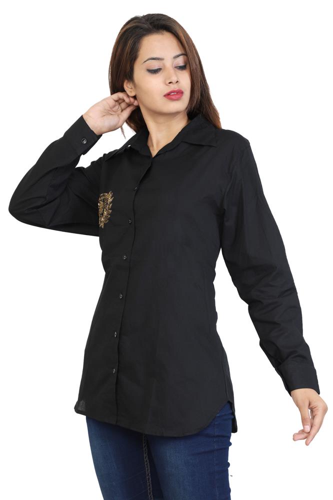 Cotton Beads Work Black Formal Shirt Full Sleeve Top