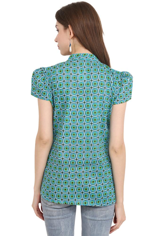 Cotton Printed C.Green Cap Sleeve Slim Fit Top