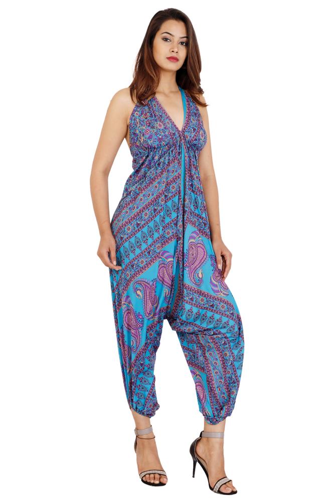 Lilashah Exports Present Look Trendy Stylish Women Turquoise Printed Jumpsuits Playsuits