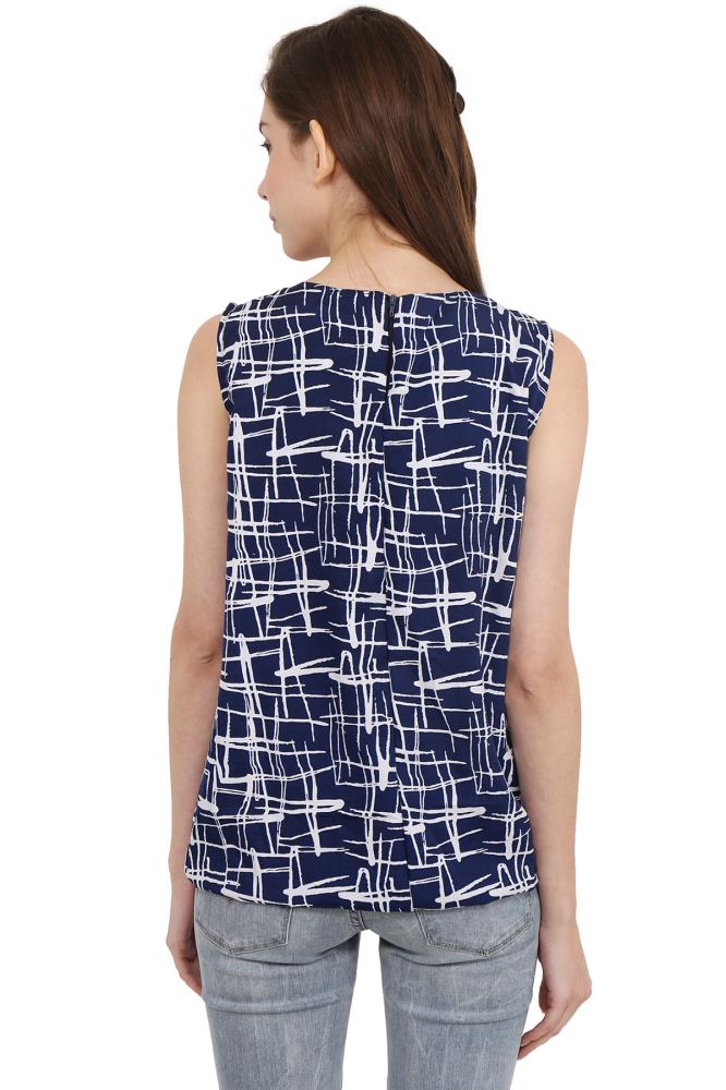 Poly Crepe Blue Checked Party Wear Sleeveless Top