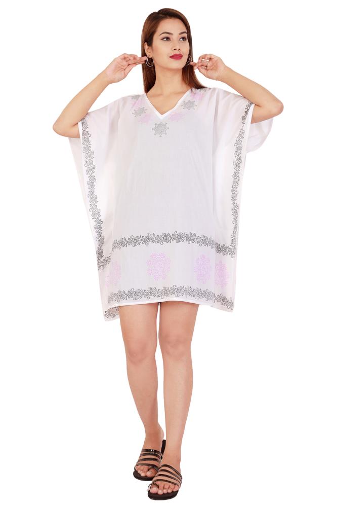 White Embroidered For Womens Party Wear Beachwear Tunics Tops
