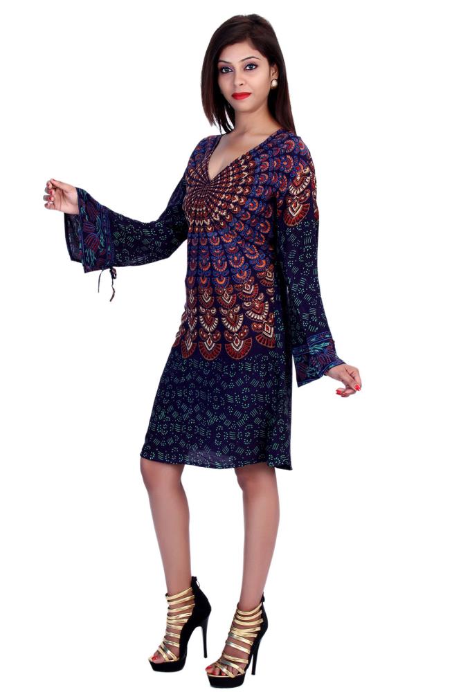 Make a stylish update on the sartorial look as you wear this dress from the house rayon mandala blue color dress regular fit dress will keep you comfortable Color :- Blue Fabric:- Rayon Sleeve: Full Sleeve Hemlines: Stitched Pattern: Printed Dress Available Size : S,M,L,XL