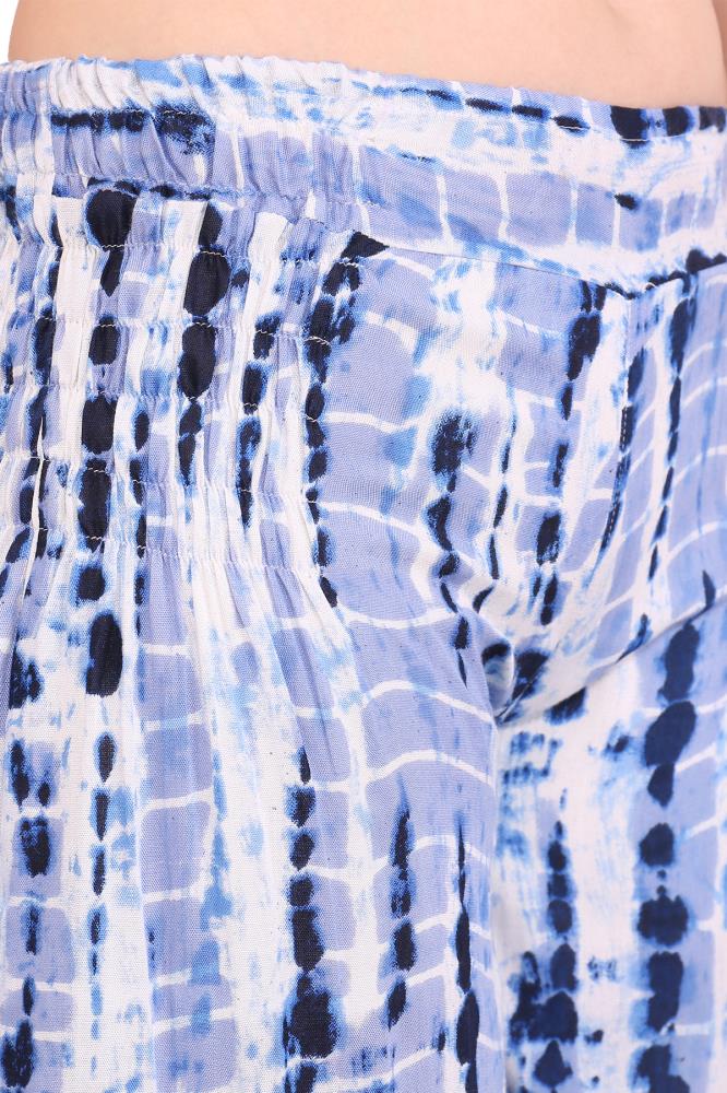 Rayon Tie Dye Blue Casual Wear Palazzo Pant Trousers