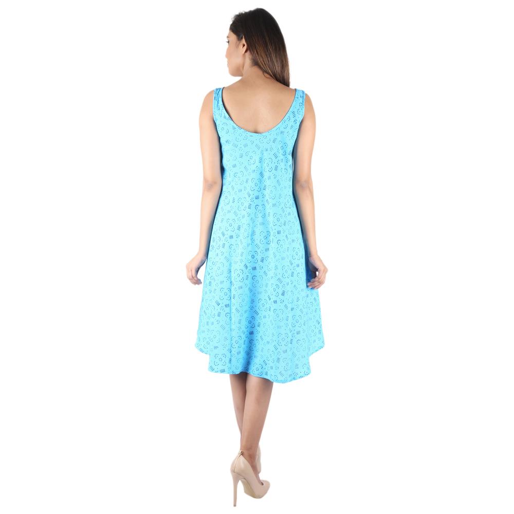 Umbrella Dresses Poly Crepe Mandala Skyblue Color Western Dress