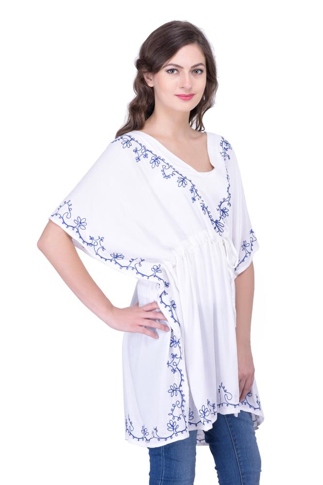 kaftan in bulk buy White Embroidered For Womens Party Wear Beachwear Tunic Tops