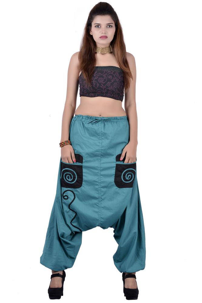 Cotton Solid Mehndi Green Pockets Beggi Trouser