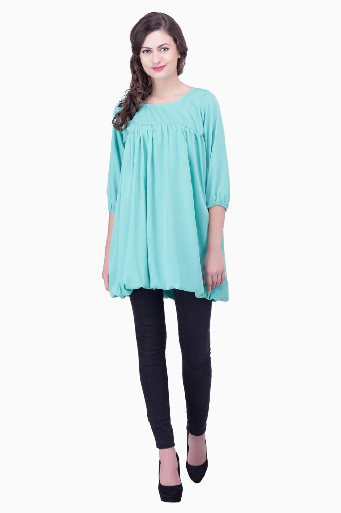 Green Solid Women Party wear office wear Casual Tunic Tops