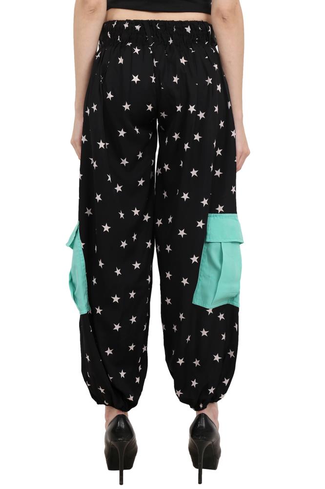 Lilashah Exports Present Look Trendy Stylish Women Party Wear Black Four Pockets Big star Print Trouser Black Color Trouser