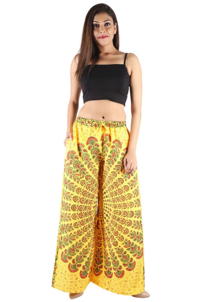 Lilashah Exports Super Stylish Comfortable and Soft Poly Crepe Mandala Print Women Yellow Palazzo