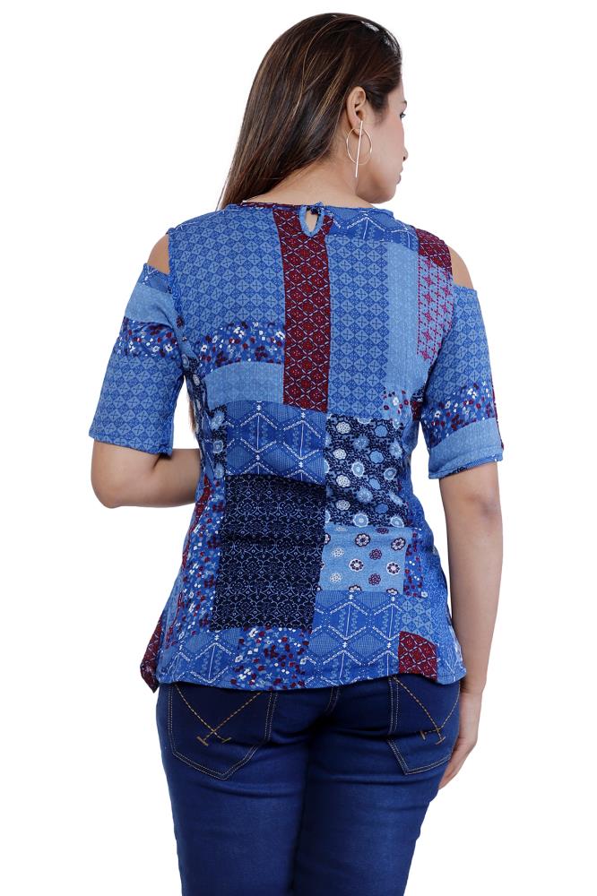 Rayon Crepe Womens Printed Round Neck Casual Tunic Top Blouse