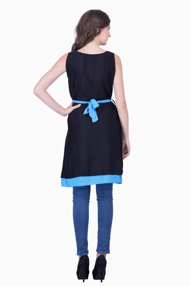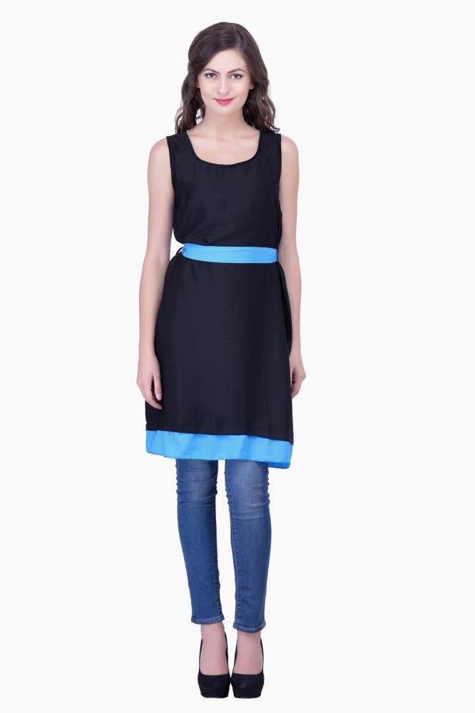 Solid Black With Sky Blue Womens Party Wear Beachwear Casual Dresses