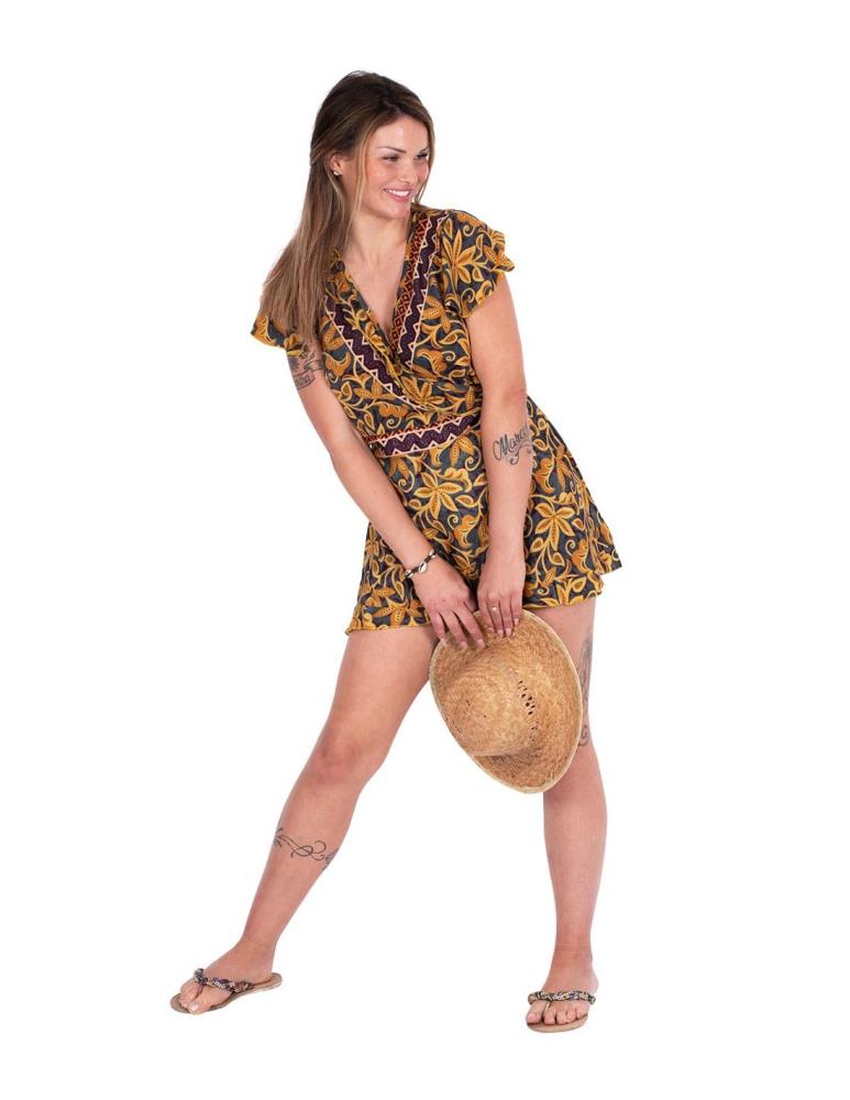A Beautiful Extra Short Wrap Dress in Yellow for Women and Girls