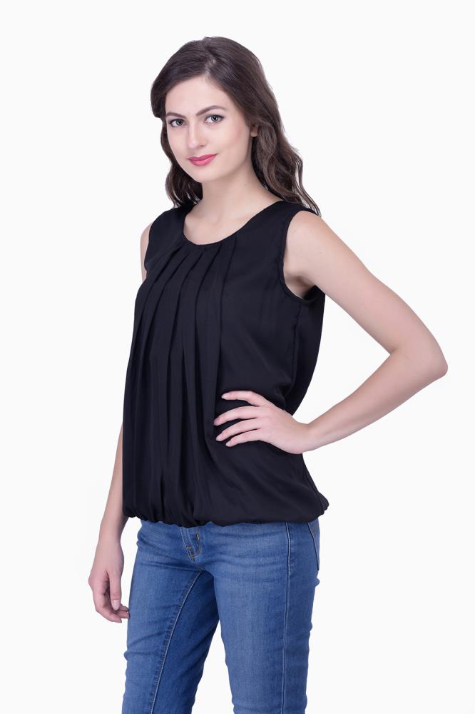 Rayon Black Solid Regular Wear Cap Sleeve Embroidery Top